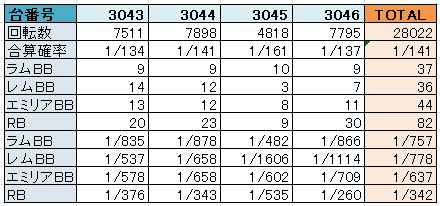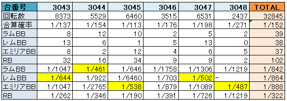 あまりBBの偏りは見えませんでしたし、RBの確率もTOTALでそのくらいですし