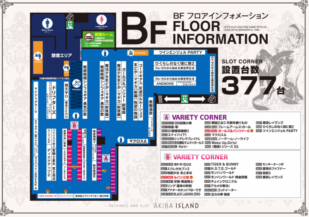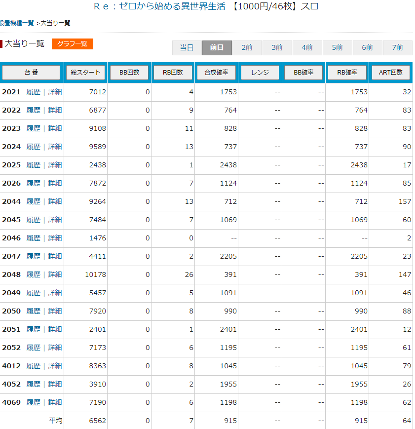 リゼロは明らかにアタリなのが1台 ある程度当たり回数がついている台が多くて中間を結構使ってるんだろうなという印象