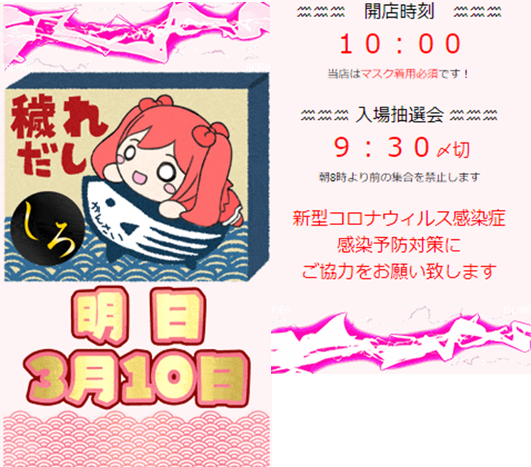 2/18の時は「いんぱち」が追加されていましたが特にそれに関わった台が出ているようには見えませんでした。見たのは末尾1,8のみなのでもしかすると末尾18は良かった とかはあるかもしれません