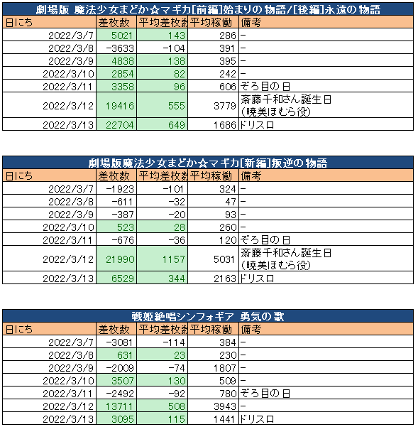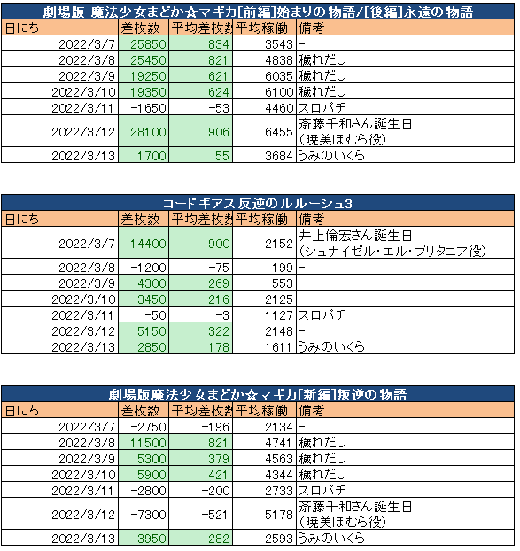 3日連続の「穢れだし」と斎藤千和さん誕生日の誕生日があったのもあってまどかシリーズが1位3位とに入っています