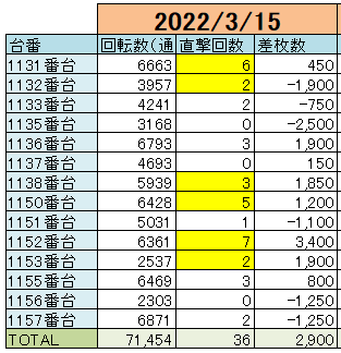表下に各台の直撃回数について調べたデータも載せておきますので参考にしてください