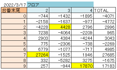 記事内に末尾別の差枚数合計の表を載せてもらっているので参考にしてください