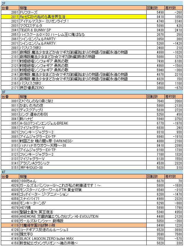 2Fは差枚数的に4の可能性もありますけど リゼロの結果とかを見ているとたぶん1?だと思います