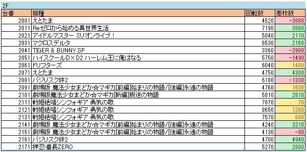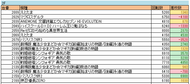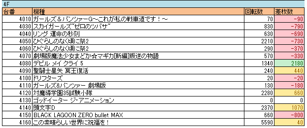 メイン機種が全部+20000枚超え