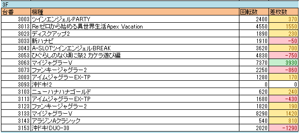 階別で台番末尾を統一して設定を入れてくれるので頑張って探しましょうの日!