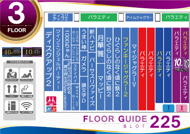 | 差枚数 | 37350枚 (1205枚/台) | 7400枚 (239枚/台) | 10200枚 (329枚/台) |
