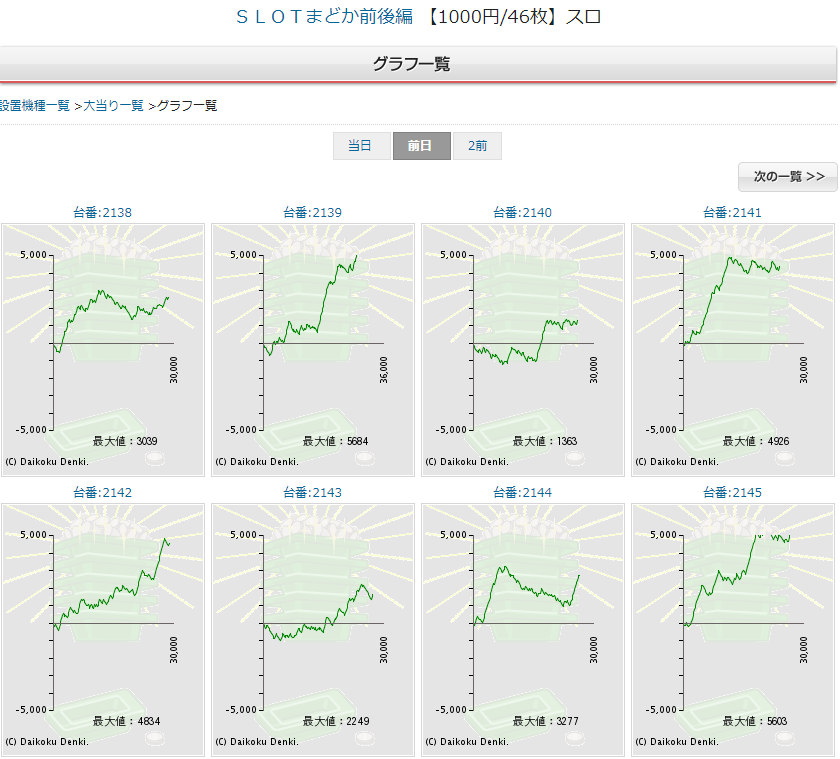 | 差枚数 | 2250枚 (73枚/台) | 26400枚 (852枚/台) | 11100枚 (358枚/台) |