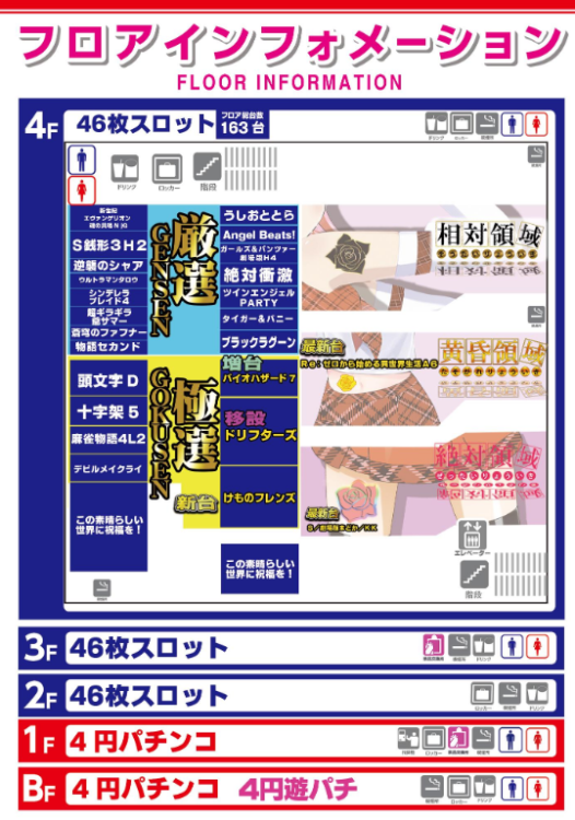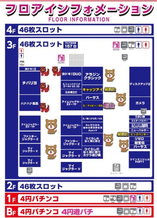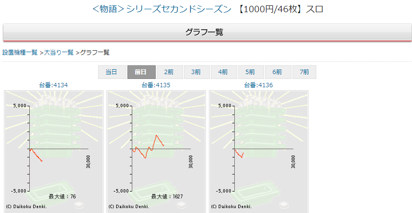 | 差枚数 | 64800枚 (1098枚/台) | 3250枚 (96枚/台) | 16900枚 (497枚/台) |