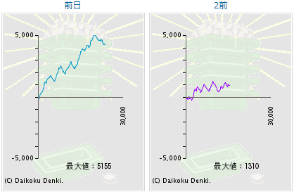 | 差枚数 | 9300枚 (300枚/台) | -5250枚 (-169枚/台) | 31500枚 (1016枚/台) |