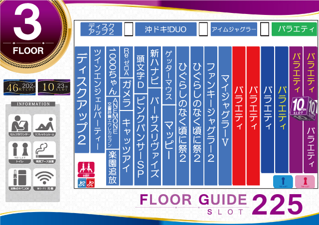 | 差枚数 | 2400枚 (109枚/台) | 5550枚 (252枚/台) | 13800枚 (627枚/台) |