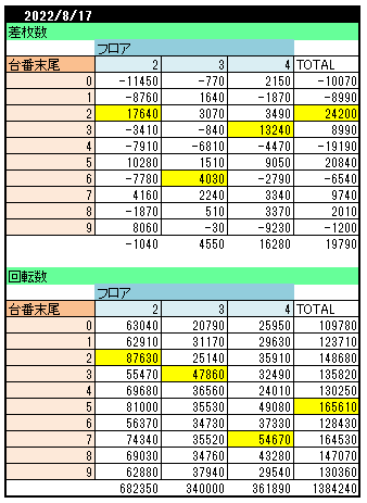 平均稼働2289回転3938回転1996回転