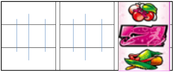 ベルこぼし目の場合は、左リールに赤7を狙った際に赤7が下段に滑ります