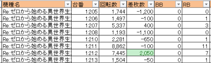 | 差枚 | 7950枚 (1325枚/台) |