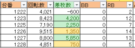 | 差枚 | 12900枚 (2580枚/台) |