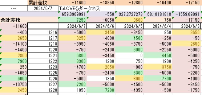| 差枚 | 23600枚 (761枚/台) |